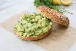 This egg salad is easy peasy, lemon squeezy. You’ll need hard boiled eggs, avocado, lemon, fresh dill and parsley and a pinch of salt. I served ours on everything bagels, but that’s really just because I’m a great wifey. My husband loves everything bagels! For some reason I don’t have much of a taste for them and would choose a croissant or wheat berry bread for my egg salad! If you want to take the presentation to the next level feel free to add some micro sprouts and thin radishes as garnish!